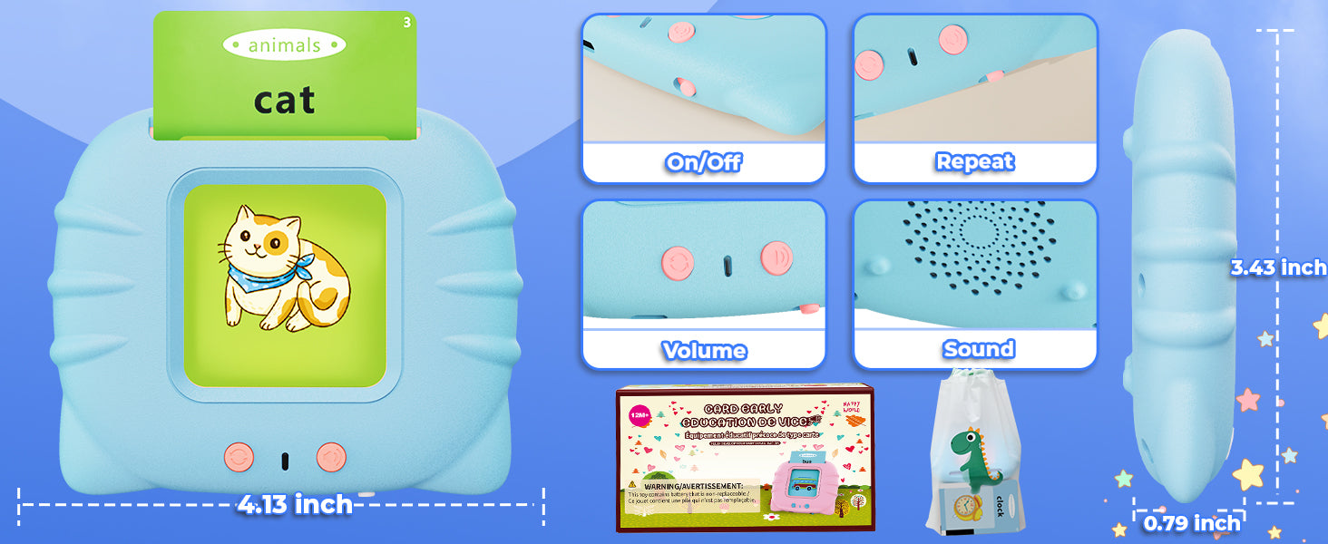 - 【Protect Eyesight Without WIFI】There is no electronic screen on the device, and no internet required. The design of this preschool educational toys is intended to protect our kid's eyesight and radiation protection. And the standard pronunciation with feeling will make it easier for baby to remember words. It's lively and interesting!kids study material for 0,1,2 ,3,4 year old